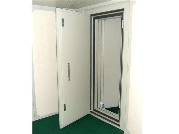 2、門扇:同樣采用優(yōu)質(zhì)鍍鋅鋼板制造而成,門扇厚度一般采用輕量化設(shè)計(jì),但具體厚度要根據(jù)隔音等級(jí)要求而定。門扇內(nèi)部填充多孔防火吸聲材料,以得到聲偶合小的高陰尼特性。門扇四周安裝雙重特殊彈性止口(密封墊)和壓緊裝置,確保密封性能。