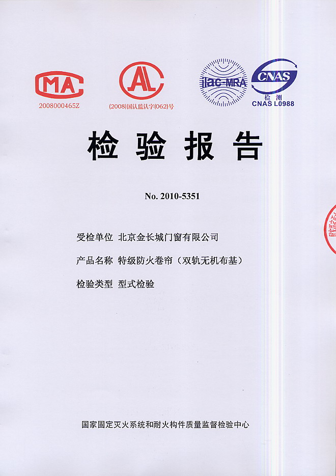 鋼質(zhì)防火防煙卷簾門檢驗報告
